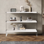 Minimal in style with a clean-lined structure, our display shelf is constructed from high quality fiberboard and framed by acrylic for a floating effect. Choose the 3 tier to display your favorite ornaments and succulents. This contemporary design fits well in the entryway, living room or home office.